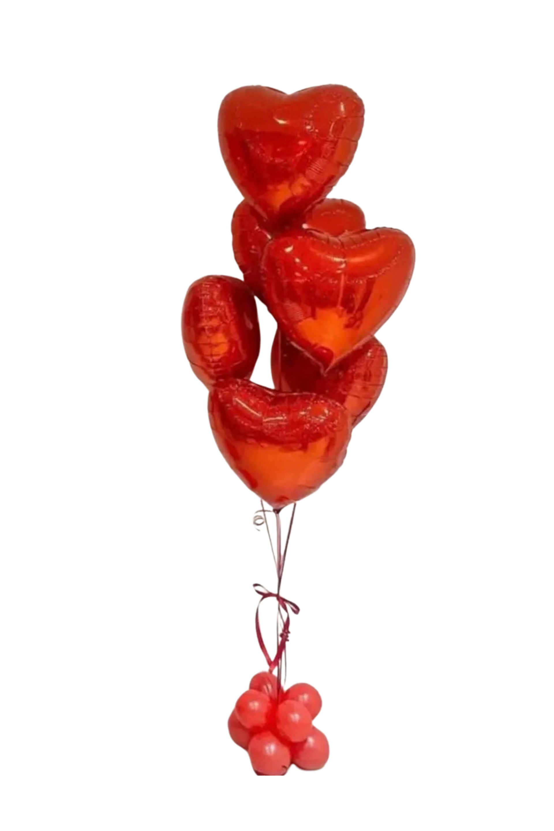 The Standard Balloon Bouquet consists of six heart-shaped foil balloons filled with helium, providing a visually appealing arrangement for various occasions. The use of foil enhances durability and longevity, with a potential float time of up to four days. This bouquet serves as an effective display for romantic or celebratory events.
